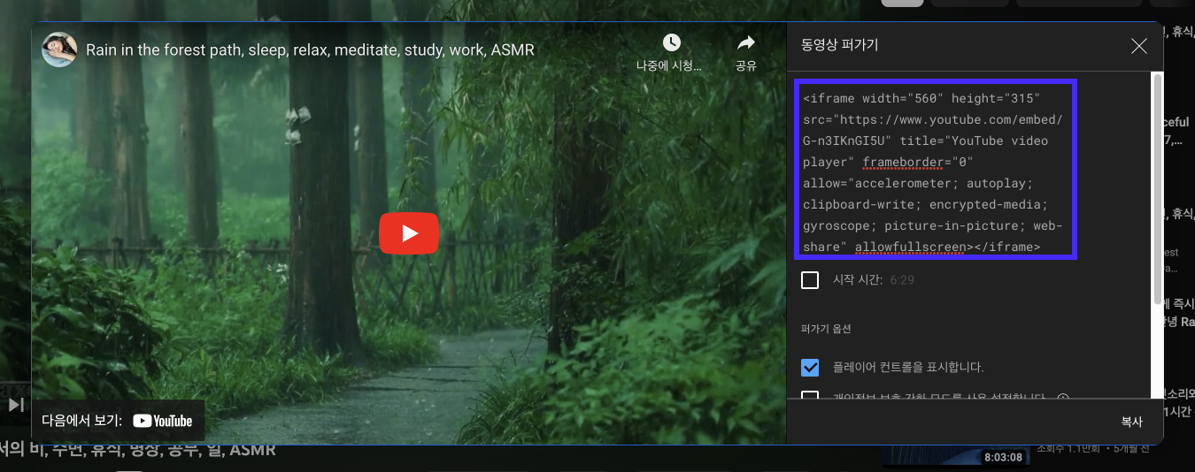 그리고 allow="autoplay"가 먹지 않아서, src 뒷부분에 ?autoplay=1을 붙여주었다.