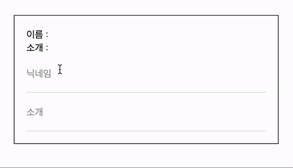 <input className="base-input" name="description" value={form.description} placeholder="소개" onChange={onChangeInputForm} />